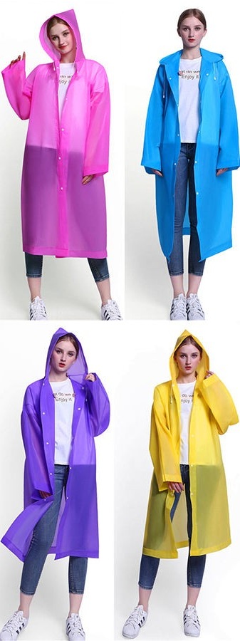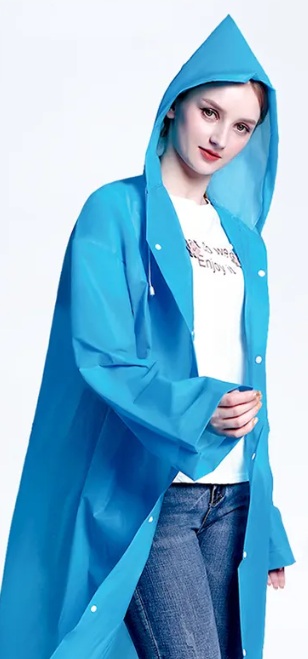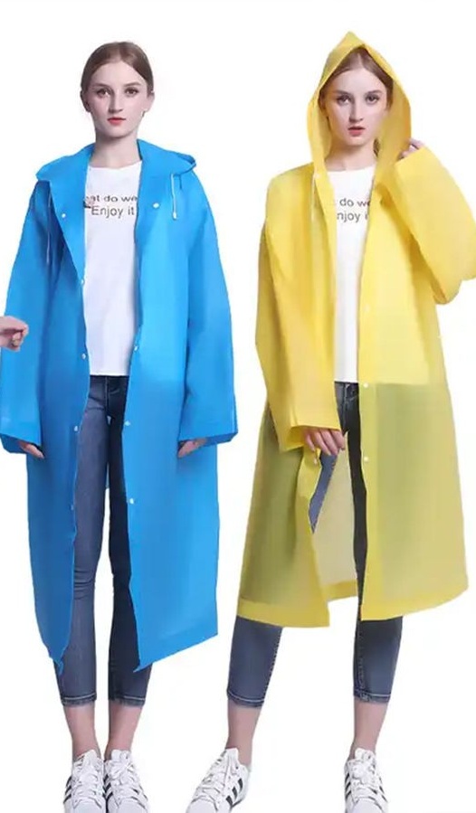 The raincoat is made from Ethylene Vinyl Acetate (EVA) which is recyclable, non-toxic and made from renewable resources.